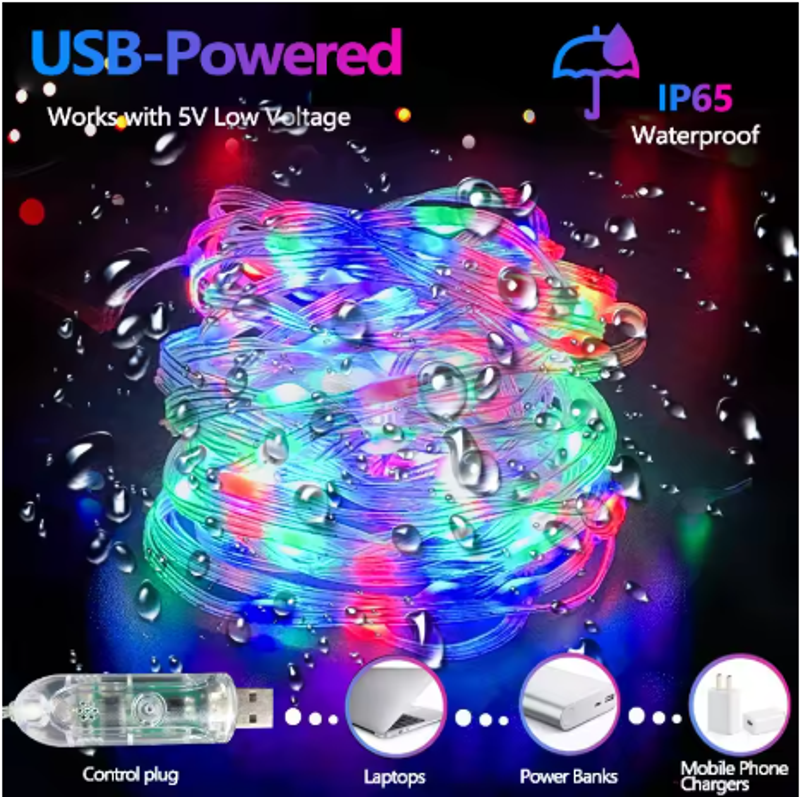Note: IP44 water resistance (USB Plug is not waterproof) The light cord has IP44 waterproof effect, the light string interface is not waterproof, the actual product is not fully waterproof, not suitable for outdoor use, not suitable for use in harsh weather environments, and only suitable for indoor decoration.